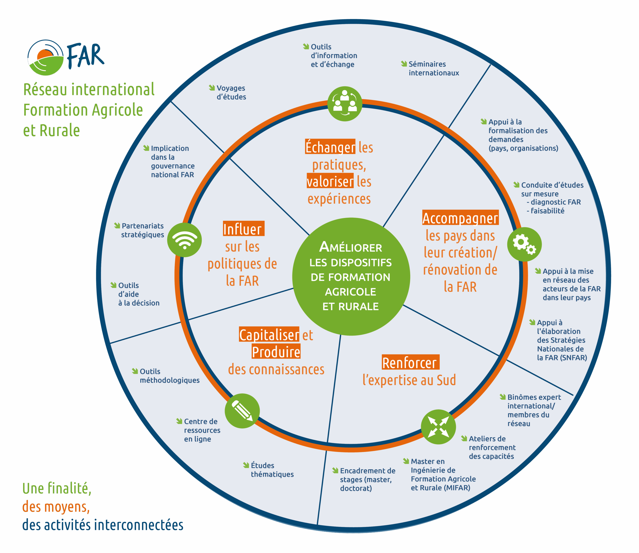 Le Réseau International FAR se donne pour mission d’appuyer les pays du Sud qui le souhaitent dans le processus de rénovation de leurs dispositifs de formation agricole et rurale.